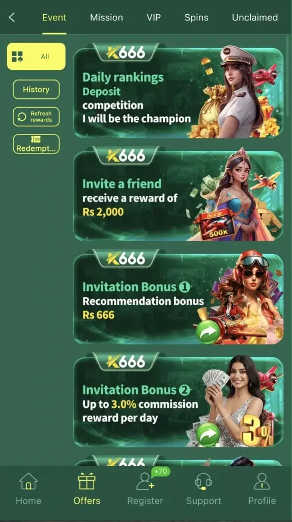 The K666 Game offers several rewards that encourage players to remain active and explore different features.