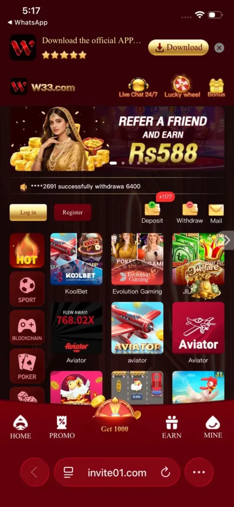 W33 Game Download APK New (Pakistan Best Earning) App 2026